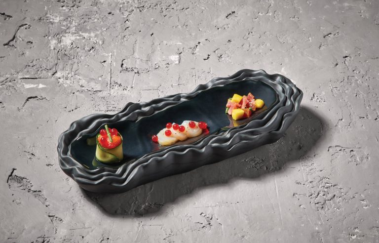 pratos com comida, coleção Saturno Eliptico, louça restaurante, louça hotelaria, pratos de porcelana, serviço louça, serviço pratos, porcelana profissional, porcelana de hotel, fine dining, pratos modernos, pratos requintados, serviço de louça intemporal, pratos para empratamento, empratamento